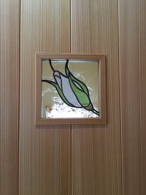 そろいのデザインでトイレの小窓にもカッパー技法のミニパネルを作成した。